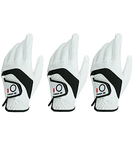 FINGER TEN Golf Gloves Men Left Hand Right with Ball Marker Cabretta Leather Weathersof Value Pack, Rain Grip Golf Glove Mens Wear Resistant (M, 1 Pack (Worn on Left Hand)