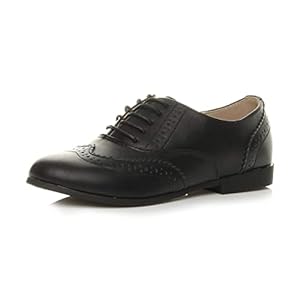 AJVANI Womens Ladies Flat Low Heel lace up Smart Vintage Oxford Shoes Brogues Size