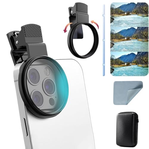 52mm Universal Clip-On CPL Polarizing Filter for Smartphones Circular Polarizer Lens Phone Camera with Easy Attachment to Eliminate Glare Enhance Colors Reduce Reflections for iPhone Samsung Android