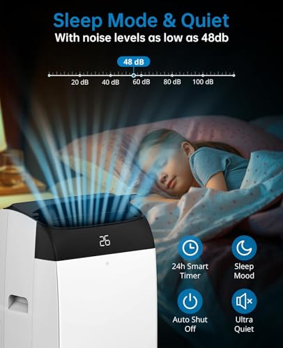 10000 BTU Portable Air Conditioner, A++ Low Energy Mobile Air Conditioner with R290 Refrigerant, 4‑in‑1 Portable AC Unit – Cooling, Dehumidifying, Fan Mode, Follow‑Me Function, Approx. 50 dB