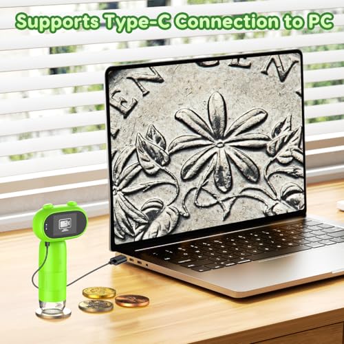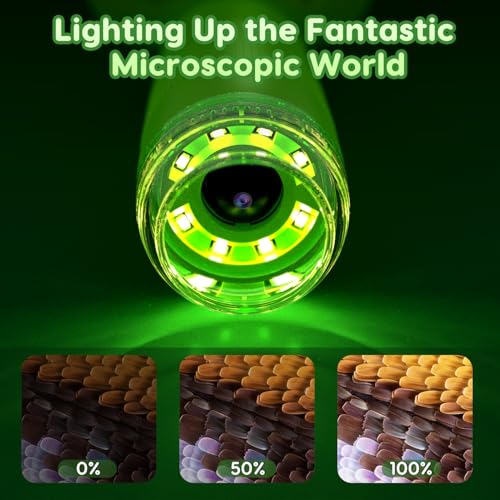 - LED Light Portable Microscope:The digital microscope comes with an LED light source, gentle and does not hurt the eyes. If we encounter insufficient light, we can turn on the LED light source, and use the LED light source to adjust the light source.The adjustable focus wheel enables precise focusing, ensuring sharp and detailed images, making it easier for children and students to observe and analyze results.