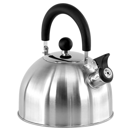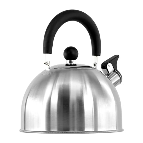 GEEZY 2.5L Stainless Steel Whistling Kettle for Gas Hob & Electric Stove Top – Lightweight Camping Tea Pot with Folding Handle – Portable Metal Water Boiler for Home Kitchen, Camping & Fishing