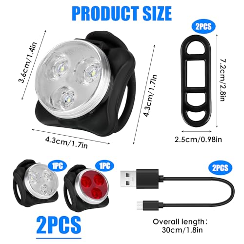 - 🔋 USB Rechargeable Convenience: Say goodbye to disposable batteries with our rechargeable bike lights set. Featuring built-in lithium batteries, these bike lights rechargeable offer long-lasting illumination and can be effortlessly charged via any USB port, providing reliable performance and overcharge protection.