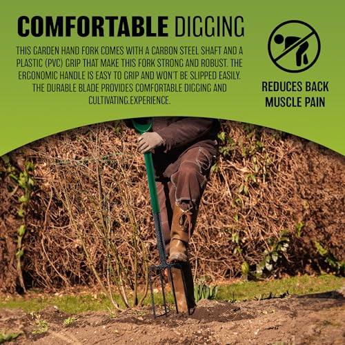 ✔️ IDEAL GARDENING TOOLS – This digging fork is an invaluable garden tool. This strong fork is ideal for digging over and breaking up compacted soil. An ideal tool for cultivating all types of soil and for the preparation of flower beds before planting seeds.