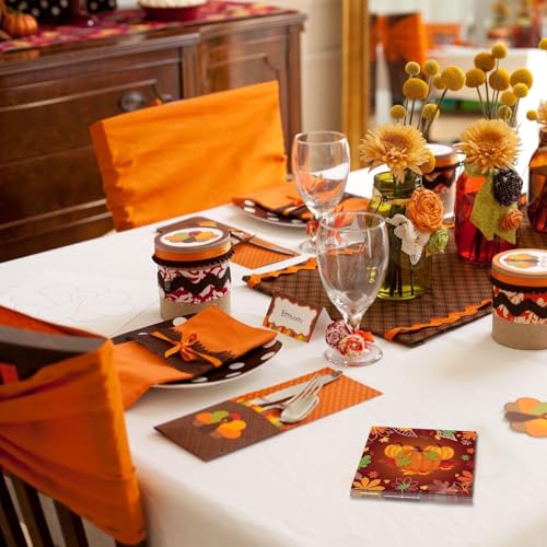 - Festive Autumn Design: Our 20 Pcs Autumn Napkins feature a charming design adorned with autumn leaves and pumpkins, instantly adding a festive touch to your table decor. The intricate details and vibrant colors of the design evoke the spirit of fall, creating a warm and inviting atmosphere for your autumn-themed celebrations.