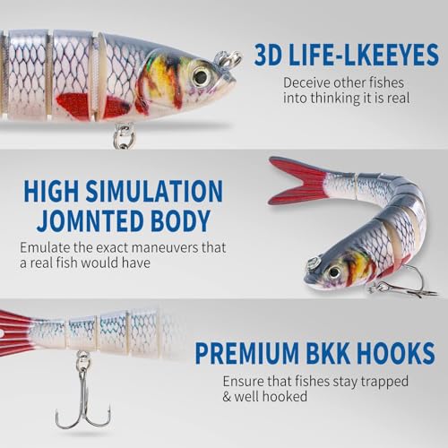 - 【High Level of Simulation】 With 3D realistic looking eyes and pearl powder coating, this swimbait appears very delicate and vivid that looks like a real fish. A perfect fishing bait that easily cheats the target fishes. This high degree of simulation enhances the baiting effect, attracting more fish and increasing your success rate in pike fishing.