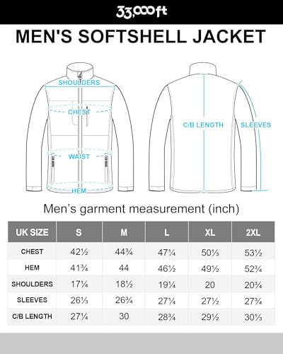 33,000ft Men's Softshell Jacket Waterproof Light Work Jacket Stand Collar Hiking Jacket Fleece Lining, Black L