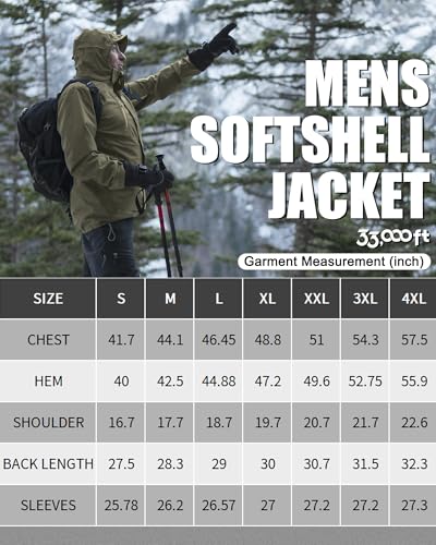 33,000ft Men's Softshell Jackets Outdoor Windproof Coat Breathable Lightweight Windbreaker Casual Functional Jackets with Hood for Running, Cycling,Olive Green M