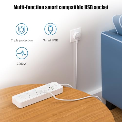 - 【 Certified Safe & Reliable】 Compliant with UKCA & CE standards, this 4 Way Extension Lead with USB Slots includes overload, over-current, and short-circuit protection for worry-free use. Backed by a 12-month warranty and 24/7 customer support