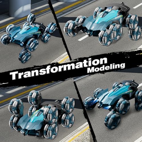 - 【360 ° rotating arm】 Each pair of tire arms can rotate 360° and easily avoid obstacles. (Note: Do not break the tire directly with your hand to prevent damage to the rotating arm.)Stunt drift remote control car for boys and girls aged 6-12.
