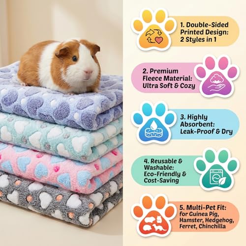 4Pcs Guinea Pig Cage Liner, Mats Washable & Reusable Guinea Pig Bedding, Soft & Absorbent Guinea Pig Fleece Cage Liners Pee Pads, Fleece Liners for Guinea Pigs, Hamsters,Hedgehogs,Ferrets,Chinchillas