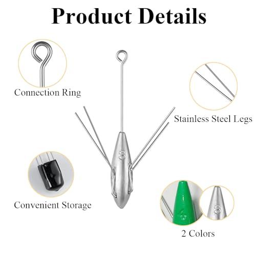 - [Novel Design]: With the design of 4 stainless steel legs, the surf fishing sinker can stand firmly in the sand, not easy to fall down, and it is suitable for long distance throwing, easy to use
