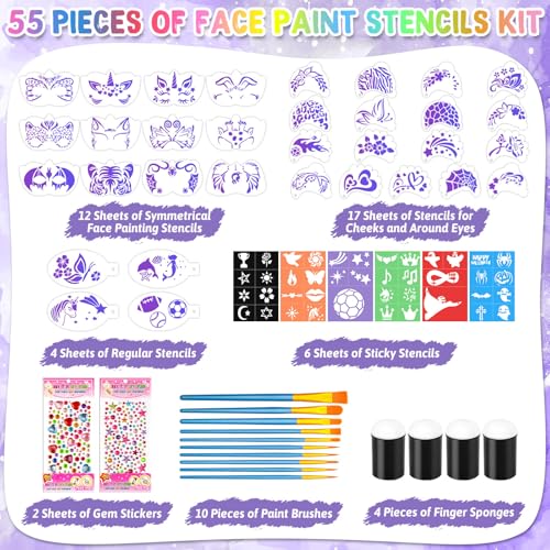 A: No, the kit includes stencils, tools, and accessories—but you’ll need to supply your own face paints.