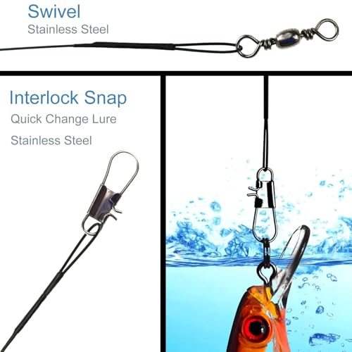 - 【High Quality Materials】 Our pike fishing lures are constructed from high-quality materials, ensuring durability and longevity. These lures are designed to withstand the rigors of fishing, making them a reliable choice for your fishing gear collection. Include 6 pieces fishing lures with hook and 10 pieces of fishing leaders of 5 different sizes(10 15 20 25 30CM).