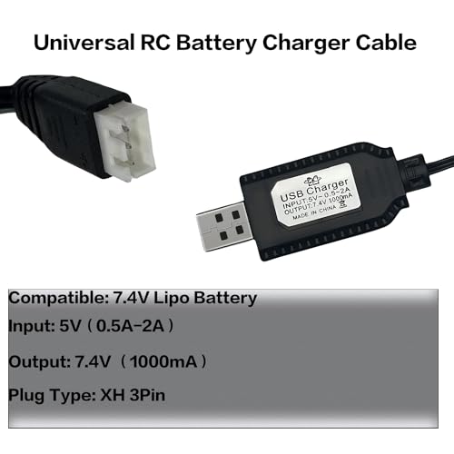 - Smart Universal RC USB Charger Cable with XH-3Pin Plug Compatible RC Car RC Plane RC Tank RC Boat and Other Remote Control Toys for 7.4V Lipo Battery