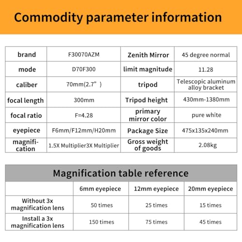 - 70mm Large Aperture: The telescope is equipped with a 70mm large aperture objective lens which makes the images brighter and clearer. The bigger the aperture is, the bigger the field of vision will be, so you can see clearer images. Professional telescope can help adults&kids view the planets and moon.