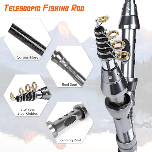 Experience the perfect fishing adventure with our Fishing Full Kit with Carrier Case. This comprehensive set caters to both novice and experienced anglers. It features a high-density carbon fiber telescopic rod for durability and a spinning reel with a powerful 5.2:1 gear ratio. The reel boasts 8 smooth ball bearings for seamless performance, while the stainless steel hooded reel seats ensure resistance to corrosion. The collapsible CNC machined aluminum handle adds convenience for storage.