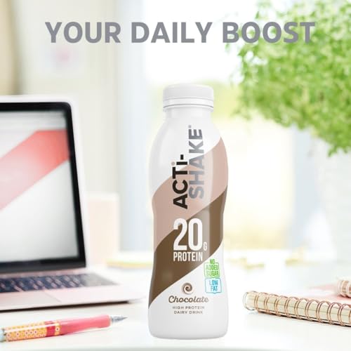 Acti-Shake Chocolate High Protein Dairy Drink 380g (Pack of 8) – 20g of Protein per bottle- Ready to Drink – Low Fat and No Added Sugars – 198 kcal – Multipack