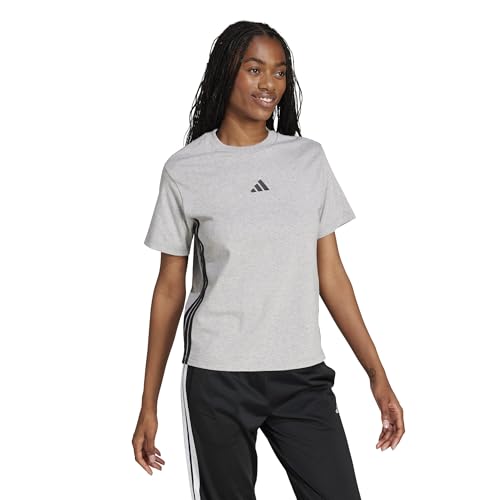 adidas Women's Essentials 3-Stripes Cotton T-Shirt, Medium Grey Heather/Black, M