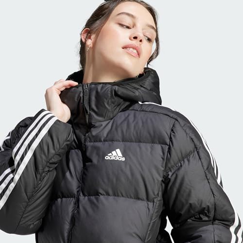 adidas Women's Essentials 3-Stripes Mid Down Hooded Jacket, Black, XS
