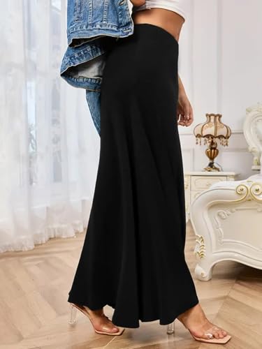 Adigaber Ladies Long Skirt Elasticated Full Length Womens High Waisted Maxi Yoga Skirt Black