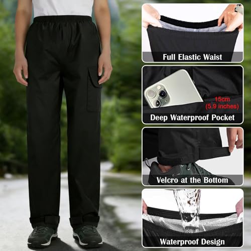 - Adjustable Fit with Deep Side Pocket & Velcro Cuffs: Features a deep side pocket for easy access and secure storage, and Velcro cuffs that prevent water from entering. The reflective detail on the leg opening improves visibility during nighttime or low-light outdoor activities, ensuring safety while using these waterproof trousers womens.