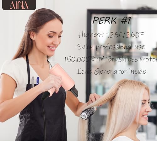 AINA Pro Salon Hair Dryer(New tech),2200W Blow Dryer with Diffuser Comb for Women | BLDC Hair Dryer | Brushless Motor 150,000 RPM | Ionic | LED Display | 4 Magnetic Attachments 230V/BS(Baby Pink)