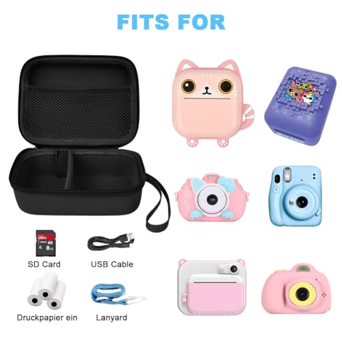 - 【Divided Design】Our kids camera case comes with divider spacers so your camera and printing paper can be stored in their own partitions. The smooth zipper design of the children's camera organizer allows you to easily access your children's digital camera at any time. The upper mesh pocket can store memory cards, USB cables, SD cards and other accessories.