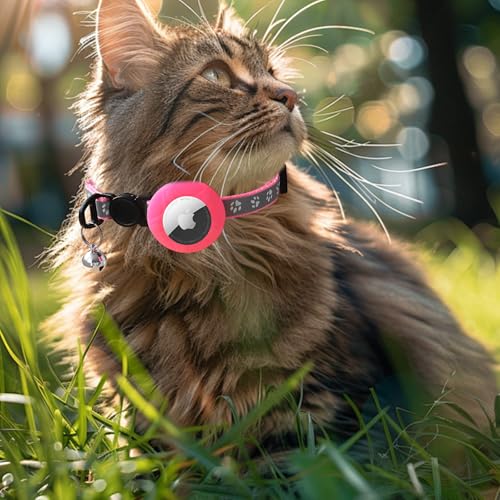 Airtag Cat Collar, Refective Collar with Safety Buckle and Waterproof Air Tag Holder, Compatible with Apple Airtag for Cat Dog Kitten Puppy (Pink), Gps Cat Tracker Collar(22cm-27.5cm)