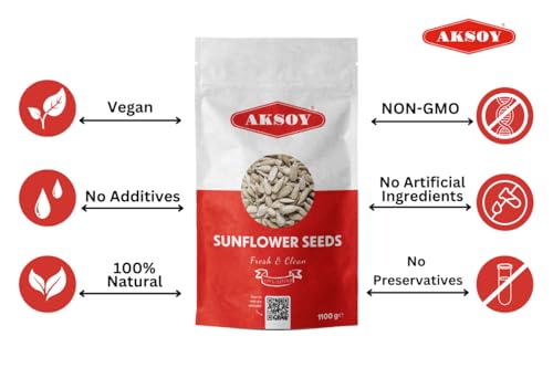 AKSOY Nuts Sunflower Seed Kernels Raw (No Shell) 1100gr | Delicious Antioxidant Rich Snack | Source of Protein, Fiber, Essential Vitamins & Minerals | Vegan (Packaging may vary)