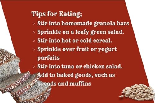 - 🌻 Raw sunflower seeds go great on top of any salad or as an ingredient in homemade trail mixes and energy balls or bars. You can use them anywhere you'd use flax or chia seeds, and incorporate them into baked goods and crunchy concoctions!