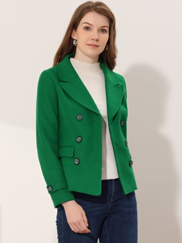 Allegra K Women's Notched Lapel Double Breasted Pea Coat Jacket, Green, L
