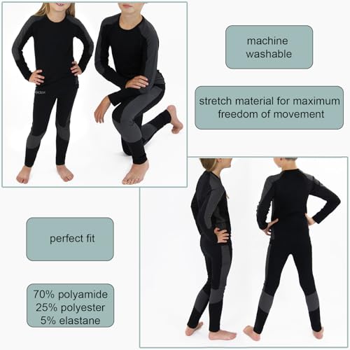 ALPIDEX Kids thermal underwear base layer set children's functional underwear boys girls sport ski breathable winter warm, Size:146-152 (11-12 years), Colour:Black-Grey