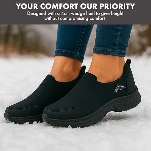 - 𝐒𝐩𝐚𝐫𝐤𝐥𝐲 𝐒𝐭𝐲𝐥𝐞 𝐰𝐢𝐭𝐡 𝐒𝐮𝐩𝐩𝐨𝐫𝐭𝐢𝐯𝐞 𝐖𝐞𝐝𝐠𝐞 𝐇𝐞𝐞𝐥: Add elegance to every step with our glitter-detailed womens trainers, designed with a subtle 4cm wedge for posture support. These stylish ladies trainers are ideal for everyday wear, effortlessly pairing fashion with function, from city walks to casual evenings.