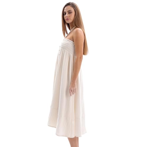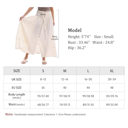 Amazhiyu Womens Cotton Maxi Skirt, Summer Maxi Boho Skirt Pleated A Line Skirts, Flowy Renaissance Skirt with Elasticated Waist Button Apricot L