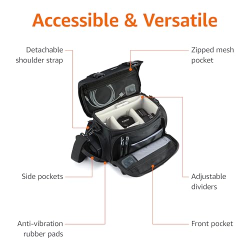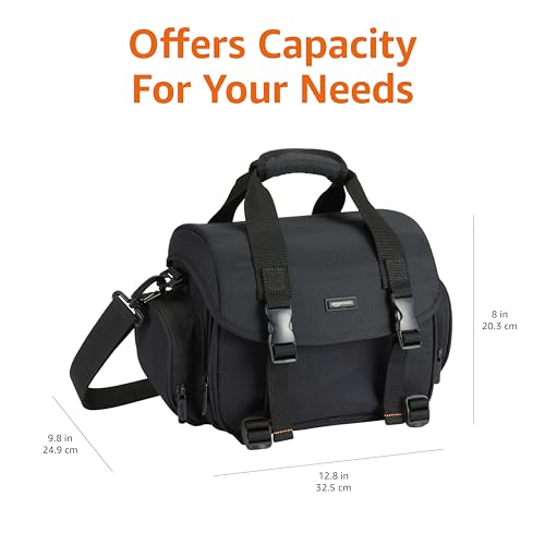 Amazon Basics Shoulder Bag for SLR Camera and Accessories, Large, Adjustable Strap, Waterproof, Shockproof, Solid, Padded – Black/Grey