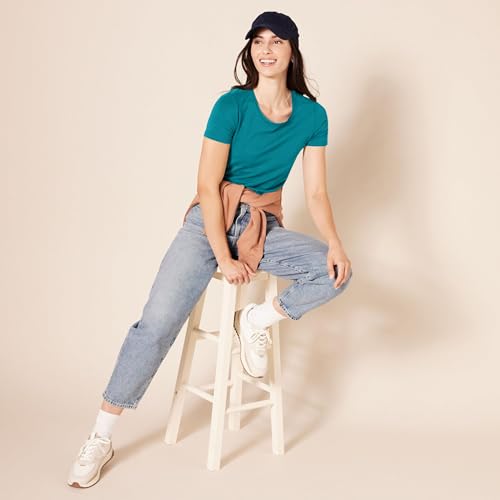 Amazon Essentials Women's Regular-Fit Short-Sleeve T-Shirt (Crewneck and V-Neck Options), Pack of 2, Navy/Teal Green, XL