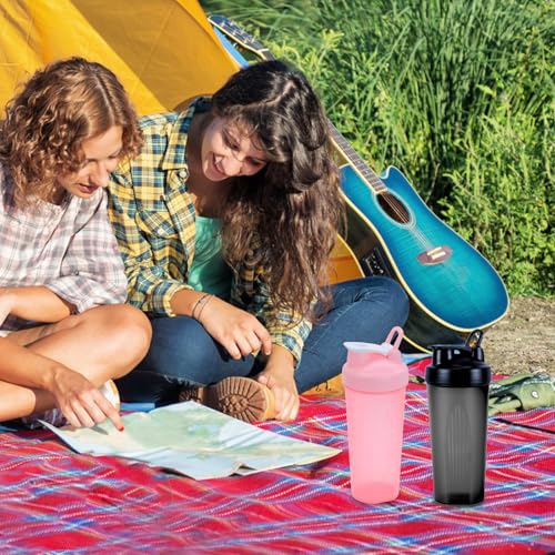 AMJKEJI Protein Shaker, 2 Pcs Shaker Bottle 600ml with Shaker Balls Plastic Cup with Lid Leakproof Protein Shakers for Gym Training Travel Sports (Black&Pink