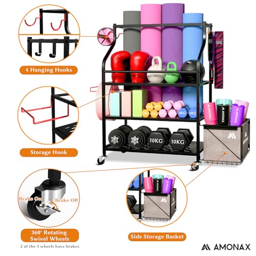 Amonax Home Gym Storage Dumbbell Rack, Weight Stand Kettlebell Rack Yoga Mat Holder Rack for Barbell Pad Resistance Band Foam Roller, Fitness Accessories Organizer Workout Equipment for Women