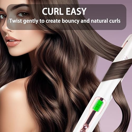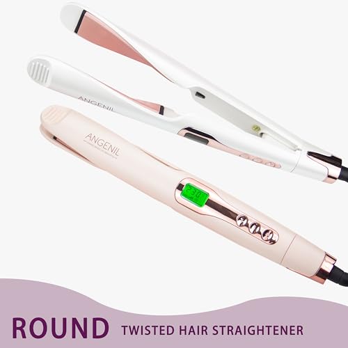 ANGENIL Pro Twist Hair Straighteners for Women, Ceramic Straightener and Curler 2 in 1, Dual Voltage Hair Straightener with Silicone Heat Resistant Mat, LCD Display, Adjustable Temperature 130-230°C