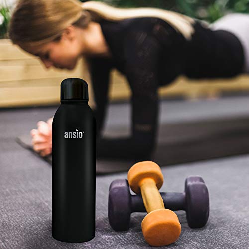 ANSIO Water Bottle,Vacuum Flask & Stainless Steel Water Bottle Double Walled Insulated Drinks Bottle Hot & Cold BPA Free Outdoor Sports Camping Hiking Cycling (500 ML, All Black)