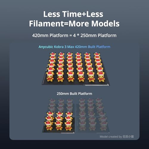 - 420*420*500mm Mega-Scale Build Volume:ANYCUBIC Kobra 3 Max Combo’s massive 420mmx420mmx500mm workspace and 88L extra large multi-color print volume let you print oversized models like multi-color wall art, pet playgrounds, or even full-scale DIY sand tables—all in one seamless piece. Kobra 3 Max 3D Printer is ideal for beginners and enthusiasts as it demonstrates ease of use both in daily home use and professional workshops. Create life-sized projects with ease!