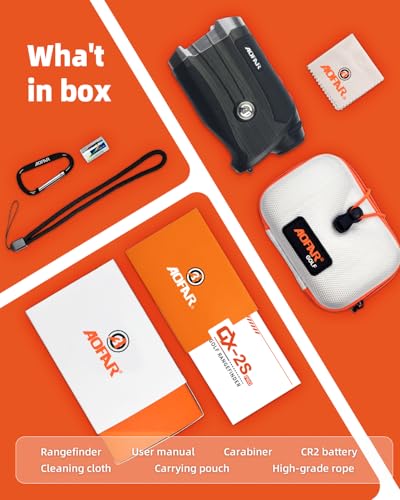 - 🎁【Perfect Gift & Worry-free Shopping】Accuracy ± 1 yard, measurement range: 5 yards to 1000 yards. The GX-2S PRO meets most users' daily needs. Weighs only 173g, its ergonomic design ensures comfortable handling. Complete accessories including a carrying case, CR2 battery, hand strap, carabiner, cleaning cloth,and user manual. Also, the beautifully designed package makes it to be a pleasant gift. To ensure product quality and customer satisfaction, AOFAR offers a two-year VIP warranty and lifetime customer support for worry-free shopping.