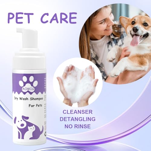 Aomig Waterless Dry Shampoo for Dogs Cats Small Animals Quick Gentle Cleaning with Nourishing Plant Extracts Without Alcohol Foam Formula Residue-Free for Travel Sensitive Skin (150 ml)