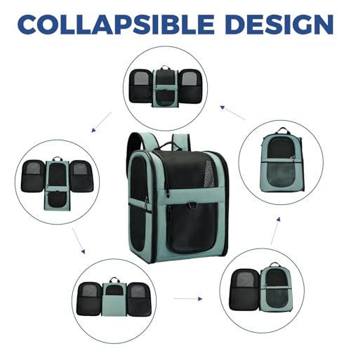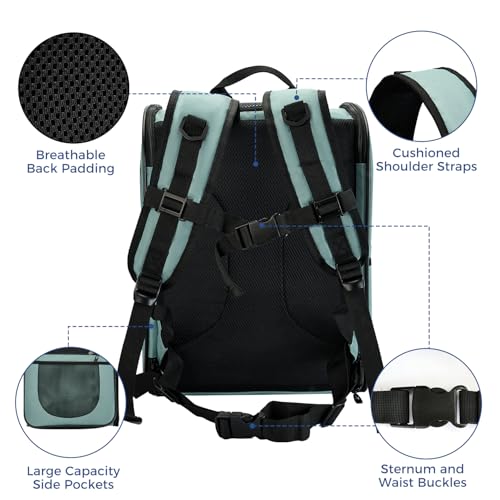 - BETTER CONSTUCTION-Well ventilated design for optimal airflow, two-way entry for easy access, top mesh window for more headroom and visibility, and thick, soft fleece bedding for your pet resting and relaxing. This backpack is firmly structured, providing ample room for your pet to move around.
