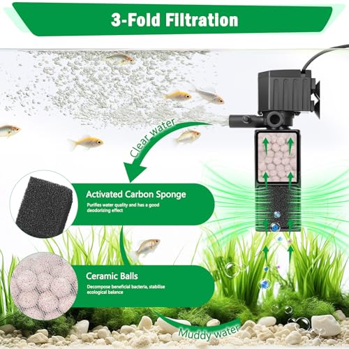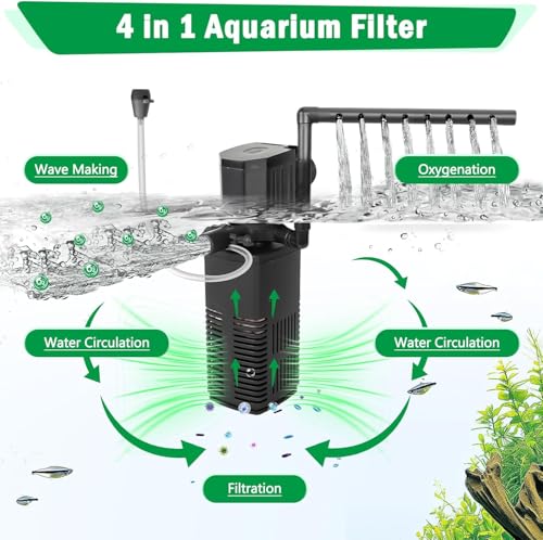 - 【4-in-1 Fish Tank Filter】This filter is powerful and ensures a good water flow. Multifunctional: ①Water purification ②Wave making ③Water circulation ④Dissolved oxygen. Efficient purification of water to maintain the health of the water, 3 days of change will be visible to the naked eye!