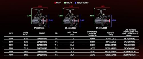 Ashconfish Fishing Reel, Freshwater and Saltwater Spinning Reel, Come with 109Yds Braid line. Lightweight Body, 5.0:1 Gear Ratio, 7+1 Steel BB, Max 17.6lbs Carbon Drag, Metal Spool &Handle,CF4000