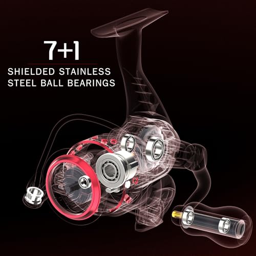 - FLUID PERFORMANCE – You will be amazed at the dynamics and faultless mechanics of Ashconfish CastFan spinning reels. Each reel features 7 stainless-steel ball bearings and 1 instant anti-reverse bearing provides exceptional line retrieval. Its oversized gear undoubtedly gives it more stability and balance. Tough construction makes it long-lasting. ****** TODAY'S GIFT****** Buy Ashconfish CastFan spinning reel today, you will also get a spool of braided line 109 yds.