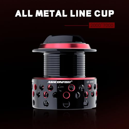 - RIGID ALUMINUM SKELETAL FRAME – The Ashconfish CastFan spin fishing reel is built for enormous strength and endless durability. The hollowed-out aluminum design frame is more than a great look! The size and the positon of the holes on frame are all calculated accurately. It helps reduce weight while maintaining the best structure and provides the greatest strength. The CastFan serials are the freshwater & saltwater fishing reels that ensure you win your fights against big fishes.