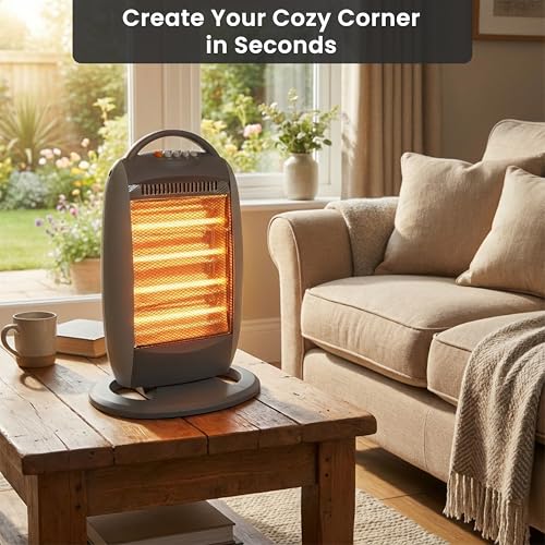 - INSTANT HEAT WITH HALOGEN TECHNOLOGY – Experience immediate warmth with advanced halogen heating. The four halogen tubes heat up rapidly, delivering instant comfort within seconds of switching on the heater.